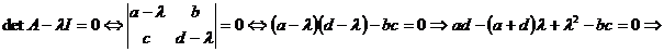 n =2 A2 –Tr(A) A + det(A)I2 =O