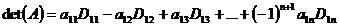 ) Formula din definitie spunem ca reprezinta dezvoltarea determinantului de ordin n dupa elementele primei linii.