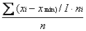 unde: xmin = limita inferioara (valoarea minima); I = intervalul claselor; n = volum esantion