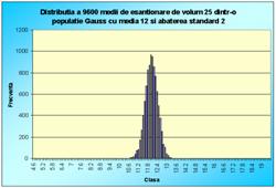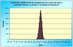 si acum sa trecem la modalitatile prin care se realizeaza inferenta statistica. De la început trebuie precizat ca un rol central îl joaca distributia Gaussiana care de fapt nu este o distributie ca oricare alta ci, datorita proprietatilor ei naturale, în special simetria, are un statut oarecum privilegiat. Pentru a ne da seama de acest lucru, sa presupunem ca ne aflam în fata unei populatii cu un numar foarte mare de indivizi, ceea ce, din punct de vedere statistic se denumeste ca "practic infinita". Sa presupunem pentru simplitate ca media populatiei respective în ceea ce priveste un anumit parametru este m iar deviatia standard este s, valori care pot fi de fapt necunoscute, iar distributia variabilei respective este normala. Sa mai presupunem ca, nestiind statistica, încercam sa aproximam pe m prin medii obtinute pe esantioane de volum mult prea mic, sa zicem de doi indivizi.