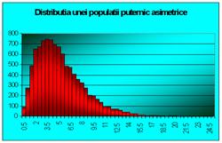 În figura 7.2, se poate observa aceiasi ideie din figura 7.1, pentru cazul când populatia de baza nu este o populatie cu repartitia Gauss ci una extrem de asimetrica. Se observa totusi ca si în acest caz, pe masura cresterii volumului loturilor, histogramele sunt tot mai simetrice.