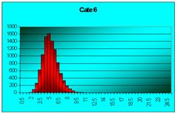 Figura 7.2 Prima histograma este executata pe seria statistica a mediilor pe loturi de câte doi indivizi extrasi dintr-o populatie de 10000 de indiviz foarte asimetric repartizatai. A doua histograma pe seria mediilor pe loturi de câte 4, extrase din aceeasi populatie. Apoi pe loturi de 6, 10, 20, 40, 100 de indivizi. S-e observa tot mai accentuat tendinta de scadere a dispersiei, pe masura ce creste volumul loturilor
