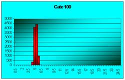 Figura 7.1 Prima histograma este executata pe seria statistica a mediilor pe loturi de câte doi indivizi extrasi dintr-o populatie de 10000 de indivizi. A doua histograma pe seria mediilor pe loturi de câte 3, extrase din aceeasi populatie. Apoi pe loturi de 4, 9, 16, 25, 36 si 100 de indivizi. S-e observa tot mai accentuat tendinta de scadere a dispersiei, pe masura ce creste volumul loturilor