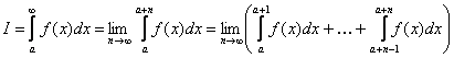 Criteriul integral de convergenta al lui Cauchy. Daca f:[a, ) este continua, pozitiva si monoton descrescatoare catre zero, atunci :