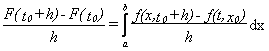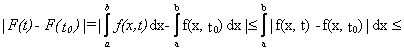 Daca f:[a,b] a b R este continua în raport cu x pentru orice t fixat din [a b] si exista ft'(x,t):E R continua pe E, atunci pentru orice t a b] are loc relatia :
