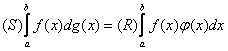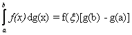 Daca f(x) este continua, iar g(x) are derivata continua pe [a,b], atunci f este integrabila în raport cu g pe [a,b] si are loc relatia :
