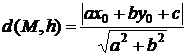 10. Distanta de la punctul Mo(xo,yo) la dreapta (h): ax + by + c = 0