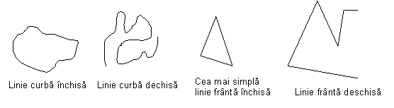 a) trei linii drepte concurente b) 757d37h linie franta deschisa c) linie curba deschisa d) linie franta inchisa e) linie curba inchisa
