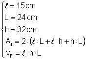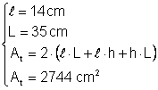 42 cm L = 44 cm si h = 46 cm At = 11608 cm2 VC