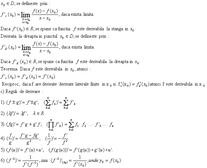 b). Daca derivata f (x0) exista si este finita se spune ca functia 919e46j f este derivabila īn x0.