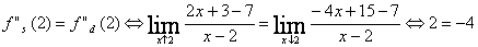 Solutie. Daca f este de doua ori derivabila in x=2, atunci functia este continua in x=2, este derivabila in x=2, este de doua ori derivabila in x=2.