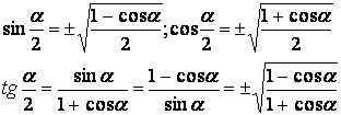 XI.4. Formule pentru jumătăti de argument: