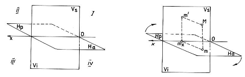Considerand doua plane de proiectie perpendiculare intre ele [H] si [V] , unde H este plan orizontal iar V este plan vertical.