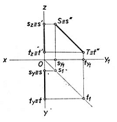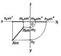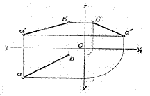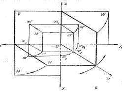 Prin aceasta transformare proiectia orizontala m ajunge pe linia de ordine m' mx m , perpendiculara pe linia de pamant, iar proiectia laterala m" ajunge pe linia de ordine m'mzm" , perpendiculara pe Oz .