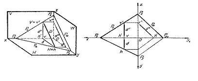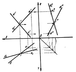 Aceste drepte -d- si -d1- sunt proiectiile dreptelor D si D1. Proiectand dreptele pe planele V si W, proiectiile lor pe un acelasi plan vor fi paralele.
