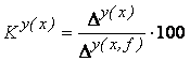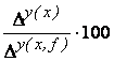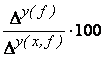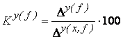 Sporul total al variabilei y care revine factorului x: