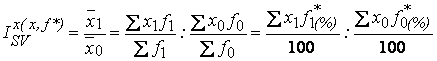 indicele influentei primului factor, de regula cel cantitativ (f), se construieste folosind drept pondere cealalta sau celelalte variabile la nivelul perioadei de baza;