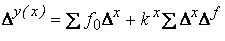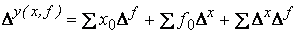 Sporul total al variabilei y care revine factorului f: