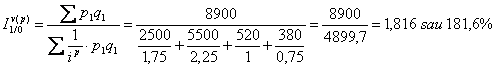 b) Sistemul de ponderare propus de H. Paasche, la care ponderile utilizate sunt cele din perioada curenta: