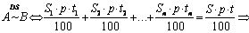 Prin urmare, echivalenta corespunzatoare unui aceluiasi procent p , la momentul initial, este data de relatia: