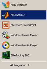 1.3.1. Comenzi de lansare MATLAB. Exista mai multe modalitati de lansare a pachetului de programe MATLAB, si anume: