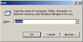 În cazul lansarii dintr-o fereastra DOS, se tasteaza "matlab" la promptul DOS.