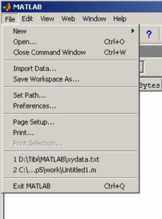 Puteti selecta un fisier în vederea deschiderii din lista celor mai recent folosite fisiere, în partea inferioara a meniului File în MATLAB Desktop sau în Editor/Debugger. Puteti schimba numarul de fisiere care apar în lista.