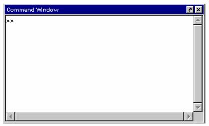 1.4.2.1. Command Window. Command Window este fereastra principala de comunicare a utilizatorului cu programul MATLAB. Aceasta fereastra permite lansare de functii si efectuarea de operatii MATLAB. Pentru deschiderea ferestrei se selecteaza Command Window din meniul View.