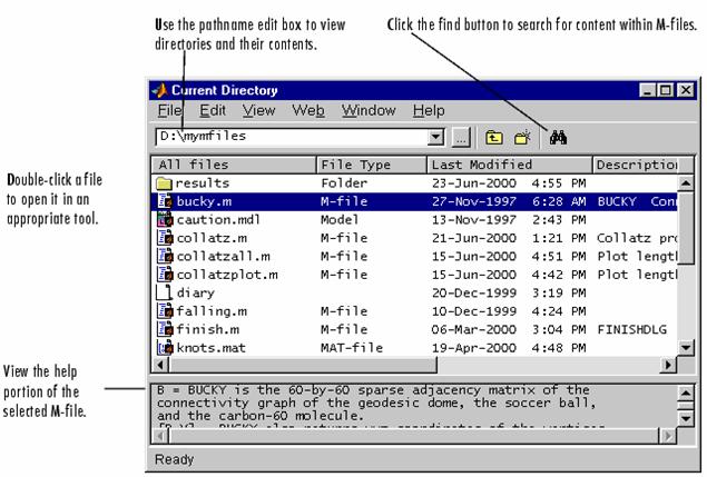 Fereastra Current Directory Browser, permite controlul asupra fisierelor MATLAB si a celor asociate