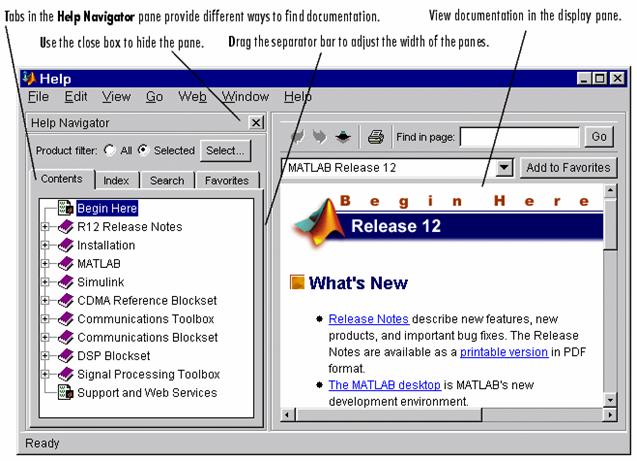 Fereastra Help Browser, permite vizualizarea si cautarea documentatiei MATLAB