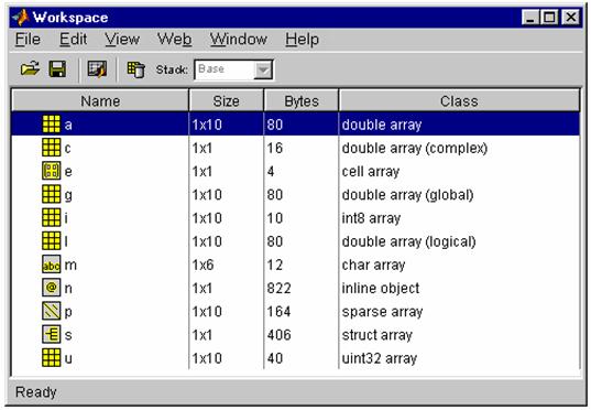 vizualizarea si editarea Workspace Variables folosind Array Editor