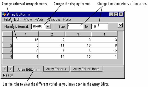 Fereastra Array Editor permite editarea si vizualizarea continutului variabilelor într-un format tabelar