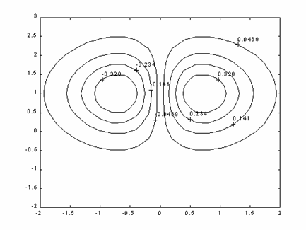 Figura 1.2 Etichetarea liniilor de nivel cu functia clabel.