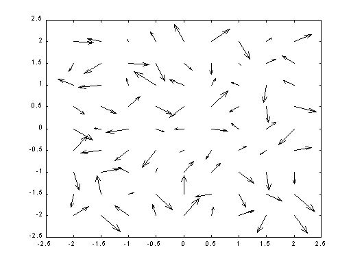 quiver(DX,DY) - presupune implicit X=1:n si Y=1:m . Īn acest caz DX si DY sunt pe o retea rectangulara;
