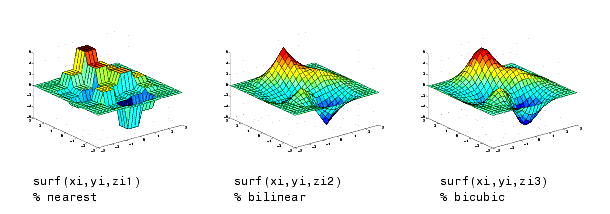 MATLAB-ul dispune de mai multe tehnici de interpolare, alegerea unei metode sau alteia facandu-se in functie de acuratetea necesara, de viteza de executie si de gradul de utilizare a memoriei.