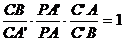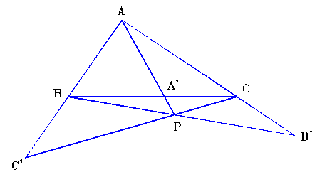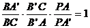 Demonstratie: (fig. 1.1.2) Fie =AA’ BB’ CC’. Aplicam teorema lui Menelau pentru DAA’B si punctele coliniare C,P, C’T ![]()