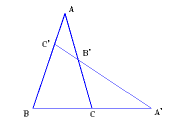Aceasta ar insemna ca [AB] este impartit de punctele interioare distincte C’, C’’ in acelasi raport; aceasta constituie o contradictie, asadar punctele A’, B’, C’ sunt coliniare.