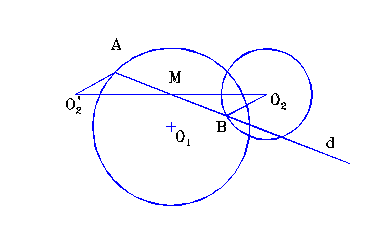 ,, Fiind date cercurile C1(O1,R1) si C2(O2, R2), precum si punctul fixat M, construiti o dreapta d care trece prin M cu proprietatea ca exista AI d C1 si B I d C2, astfel incat M este mijlocul lui [AB]. ’’