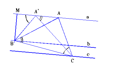 Demonstratie : ( fig. 4.4.5.) Presupunem problema rezolvata ( B> C). Fie A1 un punct astfel incat AA1|| BC, m(< ACA1) = B-C.