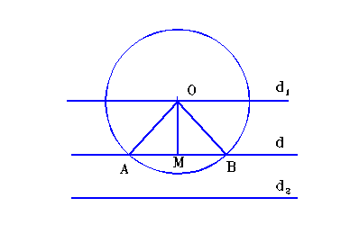 Fie C cercul dat, cu centrul in O si d directia cunoscuta. Notam cu l lungimea corzii cautate. Consideram in cercul C o coarda [AB] arbitrara de lungime l.Fie OM AB, M I AB.