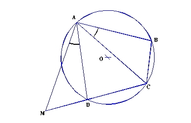 Demonstratie : Presupunem problema rezolvata. Alegem M pe dreapta CD astfel incat D este intre M si C si < MAD s < CAB ( fig. 4.2.4), lucru totdeauna posibil deoarece m(<MAD) > >m(< CAB)).