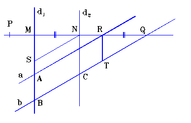 Consideram punctele : = d1 a, = d1 b, = d2 b.Rezulta ca AB || RT si