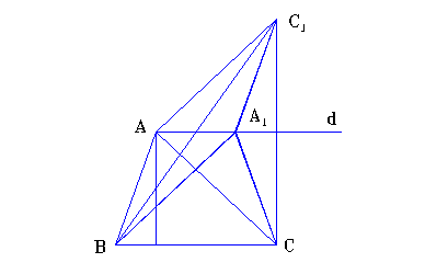 Atunci : <ABC s < A1CB, adica AA1CB este trapez isoscel. Fie C1 simetricul lui C fata de dreapta AA1.Avem : [AB] s [ A1C] s [ A1C1] si [AC1] s [ AC ] s [ BA1 ], deci patrulaterul ABA1C1 este paralelogram. Observam ca m(< BAC1) =1800- m(< ABA1)= 1800- (B-C), deci unghiul BAC1 este cunoscut.