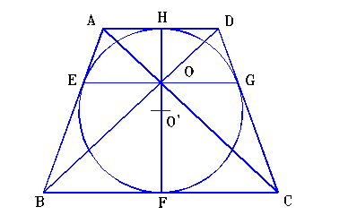 Problema 2.2.3. In trapezul isoscel ABCD (BC || AD ), circumscris unui cerc, fie E,F,G,H punctele de contact ale cercului cu laturile AB, BC, CD si, respectiv DA iar O punctul de intersectie al diagonalelor. Sa se arate ca, punctele E, O, G sunt coliniare.