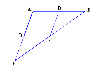 Problema 2.2.9. Fie paralelogramul ABCD, (AB < AD ) si punctele E,F astfel incat AI(BE),FI(AD),BE=AD,DF=AB. Sa se demonstreze ca punctele C,F,E sunt coliniare.