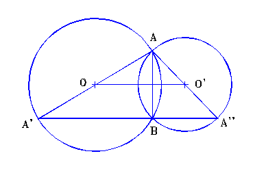 Problema 2.2.7. Cercurile de centru O si O’ si de diametre AA’ si AA” au comune punctele A si B. Sa se demonstreze ca punctele A’ , B, A’’ sunt coliniare.