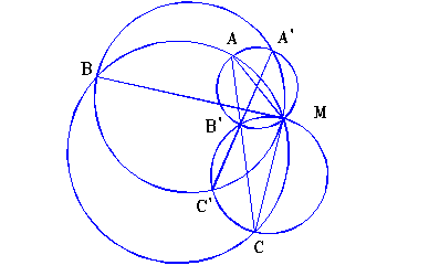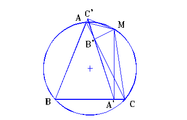 Demonstratie: (fig. 2.2.10.) Fie A’ =prBC M , B’ = pr AC M si C’ = pr AB M. Unim B’ cu A’ si separat B’ cu C’. Patrulaterele ABCM, A’CMB’ , AB’ MC’ sunt inscriptibile.