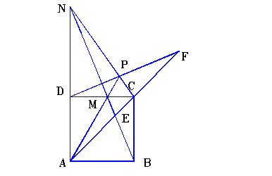 Cum punctele D,F si B, E sunt de o parte si de alta a lui AC, rezulta ca F cu E sunt de o parte si de alta a dreptei AC, deci CI(FE). Unghiurile ACF si ACE sunt adiacente suplementare, deci laturile vor fi in prelungire. Rezulta ca F,C,E sunt coliniare.