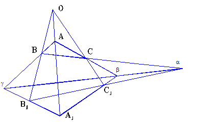 Asadar, <BA1B1s < CA1C1 si, cum B1, C1 sunt situate de o parte si de alta a dreptei BC, urmeaza ca B1, A1, C1 sunt coliniare.