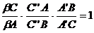Se scrie teorema lui Menelau pentru ΔABC si tripletele de puncte coliniare , , . Atunci: